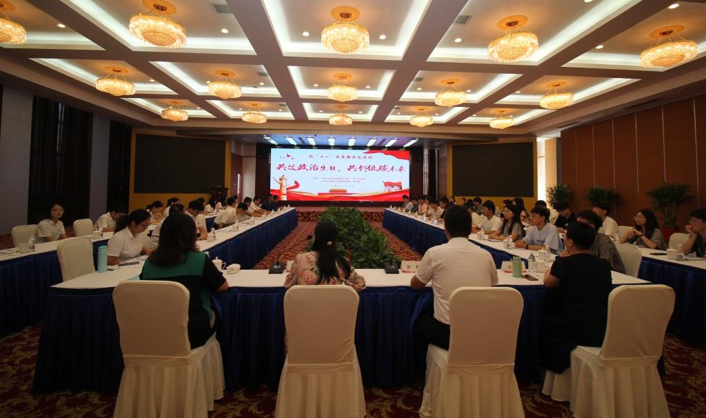 在迎七一党支部共建的活动上,徐韬介绍江苏金山环保工程集团党委第一党支部情况和企业情况,东氿校区研究生第二党支部书记毛雪莲作为党员代表介绍研究生党支部工作,中共宜兴市委党校培训科副科长孙锦霞作专题报告,主题为“党的二十大进企业——习近平的天下情怀”。最后双方党支部对课题研究、行业动向、就业情况等进行座谈交流。整个过程中企业与学生之间有着很好地沟通交流,企业深入了解了新一代青年的思想动态,学生更好地掌握企业对于人才的需求等。会上,支部对6月份新入党的党员同志赠送“生日”贺卡,寄托组织祝福。