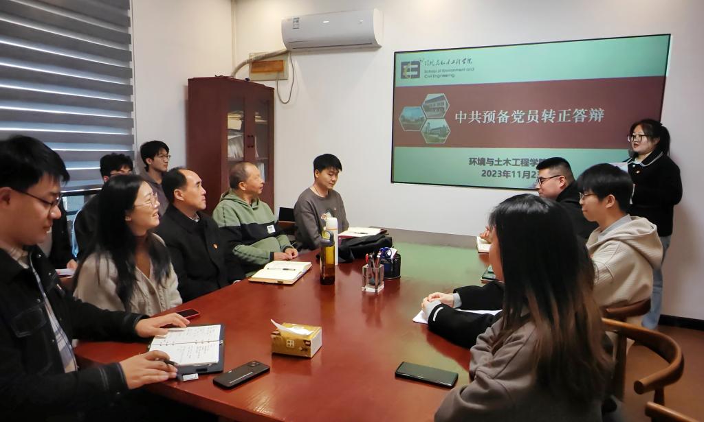在D314会议室召开2023年下半年预备党员转正答辩大会。出席本次会议的人员有党员代表衡延笃同志、黄庆发同志,教师党员代表周期老师、薛羚伟老师,以及辅导员李东辉老师,并组成答辩评议小组,主要讨论8位预备党员转正问题。