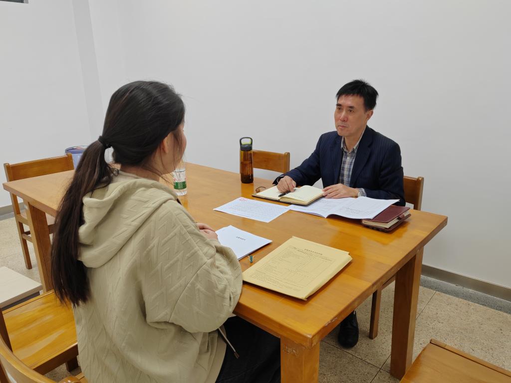 最后衡延笃老师和黄庆发老师与学院下半年发展的7位同学进行一对一谈话,考察入党动机、对党的认识、对党的基本理论知识的掌握、对时事政治、重大热点的看法以及对象自身的优缺点,旨在通过此次谈话加深发展对象对党的认识以及端正入党动机。