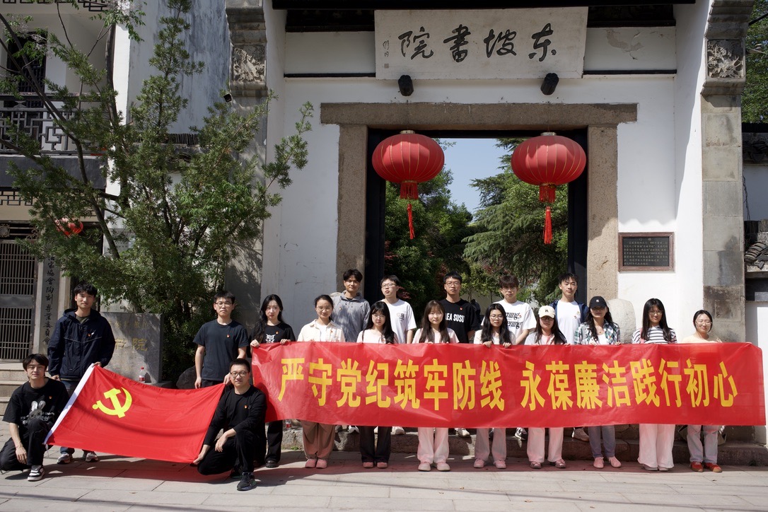 为深入学习贯彻党的二十大精神,巩固党纪学习教育成果,推动中央八项规定精神落地生根,4月18日下午,金宝娱乐城 东氿校区研究生党支部以“沉浸式研学+情景式党课”的创新形式,组织全体党员前往宜兴市丁蜀镇东坡书院开展“严守党纪筑牢防线,永葆廉洁践行初心”——廉政文化专题教育党日活动。通过追溯千年廉政文脉、聆听廉洁故事、剖析警示案例,党员们在历史与现实的交融中厚植清廉底色,凝聚奋进力量。
