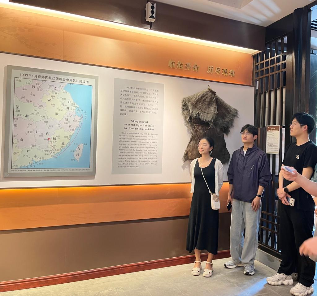 紧接着,大家参观了故居内的“秦邦宪生平事迹陈列”展。展览分为《勤奋读书 立志报国》、《新闻事业 辉煌新篇》、《临危受命 历尽艰难》等六个部分。在参观过程中,同志们驻足凝视泛黄的家书、磨损的钢笔等文物,特别是了解到秦邦宪同志主持创办《解放日报》、翻译《共产党宣言》等重要事迹时,深刻感受到老一辈革命家"革命理想高于天"的坚定信念。展览中二百余件历史照片及实物资料,真实、生动、形象地再现了秦邦宪同志为中国人民解放事业作出了重要贡献的辉煌一生。