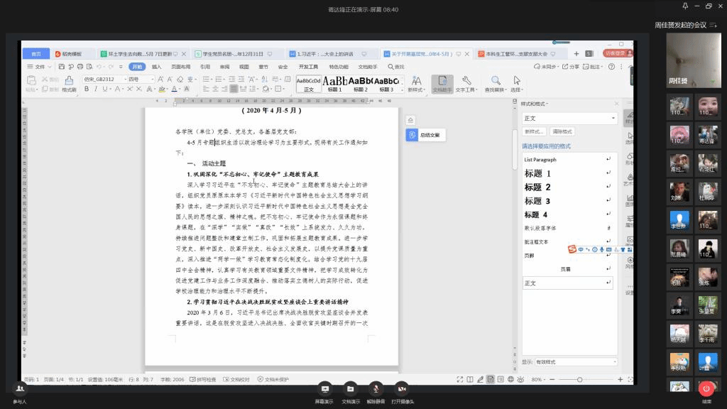 为了加强党员政治理论学习,学习贯彻习近平总书记的重要讲话精神,65日上午,本科生工管环工专业党支部召开组织生活会暨毕业生党员教育。本次会议以线上形式开展,由支部书记蒋达锋老师主持,支部全体党员参加。