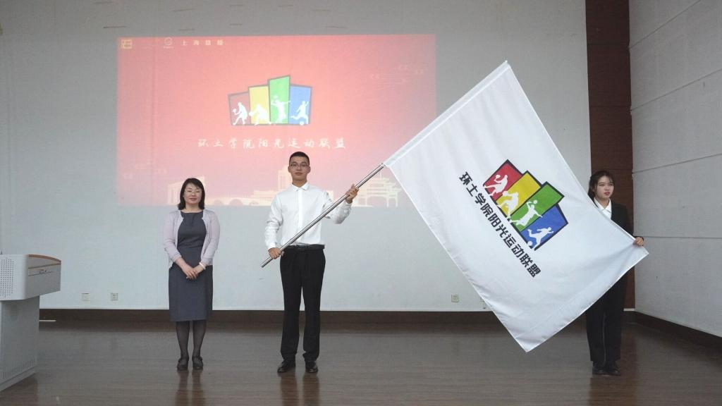 会议伊始,学院学生会文体部部长张志强对学生体育工作进行了汇报与总结,再现运动员们积极进取、顽强拼搏的青春活力。接着,薛羚伟宣读了校运会成绩。随后,在校运会上打破校男子铅球纪录的郁秦杰同学代表优秀运动员发言。胡娟宣读学院体育工作先进表彰决定并颁奖,与会的其他嘉宾分别为运动会获奖运动员、优秀志愿者等进行颁奖。活动最后,胡娟发布了学院体育标识,并为阳光运动联盟授旗,与会嘉宾分别为各运动队授旗。