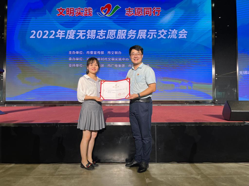 8月23日由无锡市委宣传部、市文明办举办的2022年度无锡市志愿服务展示交流会在滨湖区新时代文明实践中心顺利举行,环境与土木工程学院团委书记兼学工办主任周佳赟带领环境与土木工程学院“E路潜行-生态志愿服务”团队参加路演,并获得金奖。