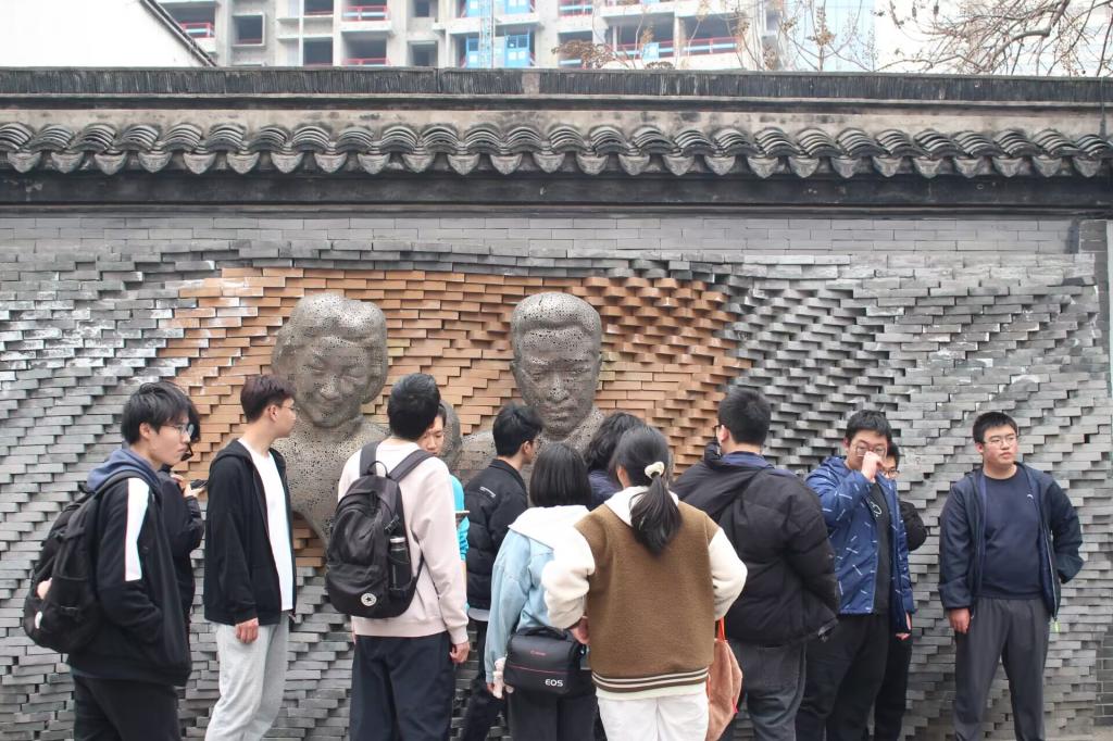 在抵达故居之后,同学们自由参观故居。故居其中一部分,钱绳武堂,是一组近代江南民宅,主体建筑为平房两进,每进面阔七间,东有备弄,中有天井。整体建筑典雅别致、结构紧凑。钱钟书故居古朴素静,没有画栋雕梁,也无名园奇卉,简朴中蕴含着江南书香门第的文化气息。一些看过钱钟书著作的同学感叹与故居展出的《围城》《人兽鬼》《谈艺录》和《写在人生边上》均是中华人民共和国成立前正式出版著作的第一版第一次印刷版本,是“下手稿一等”的重要版本,具有较为重要的收藏、研究价值。同时,故居还布置出了“我们仨”的家,复原生活场景,家里有柜子、椅子、脸盆、脸盆架,窗口的案几上放着茶壶、茶杯。墙上摆着、挂着钱锺书、杨绛、钱瑗一家三口的生活照。之前了解过钱钟书一家人的家庭情况的同学不禁一些感想涌上心头,感伤于他们失去家人的悲伤。故居内部还设置有雷锋书友服务站,为附近的老人们提供了一个能够安静读书又能获得帮助的优美环境,成功多次组织老人们一同观看抗战题材电影和钱钟书纪录片。