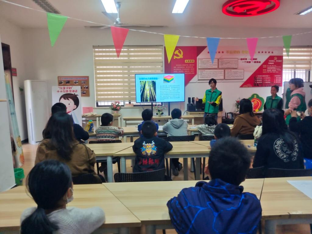 首先,由提前推选出的志愿者进行PPT的讲解,介绍关于垃圾分类的知识。在讲解的过程中,志愿者们还与小朋友们进行了互动提问,而小朋友们在回答问题非常积极,表现出了对环保的高度关注和参与热情,纷纷举手回答问题。在小朋友们回答问题正确后,志愿者将精心准备的礼物分发到他们手中。