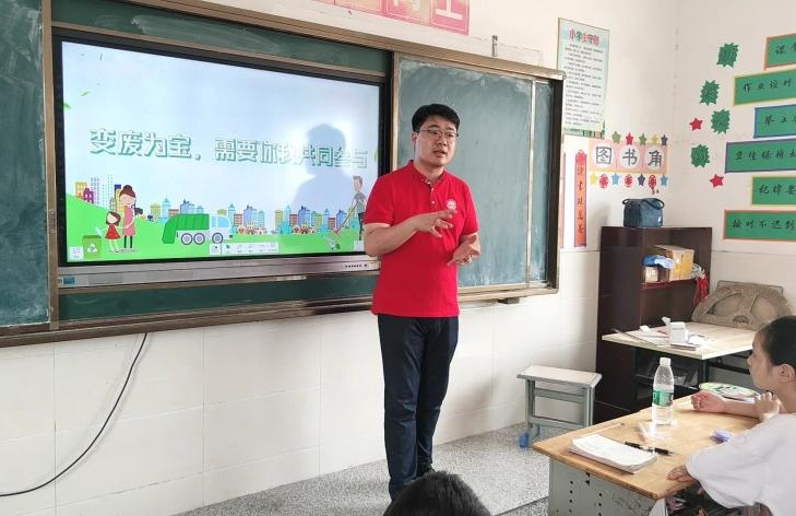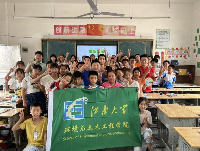 7月14日,环境与土木工程学院“E路潜行”志愿服务小组师生一行来到湖北省黄梅县分路镇第一中心小学,给30余位小朋友带来了一场寓教于乐的环保宣讲。