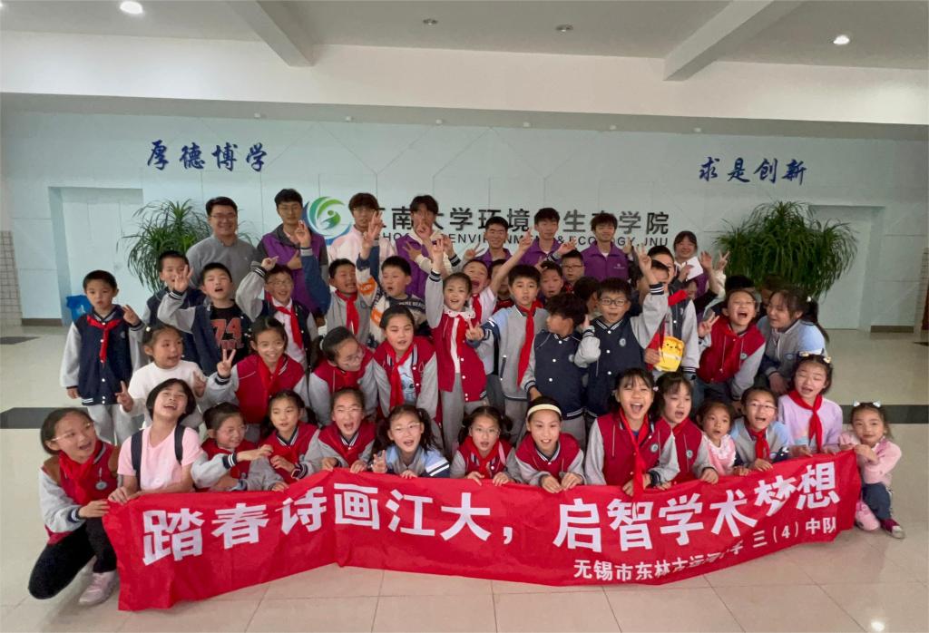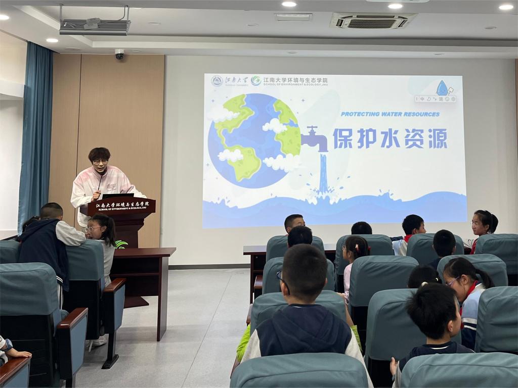 开展了E路潜行--习近平生态文明思想宣讲活动,无锡市古运河实验小学三年级(4)班全体学生和家长代表参加,学院环境科学本科生李睿主讲,学工办主任兼分团委书记薛羚伟主持。