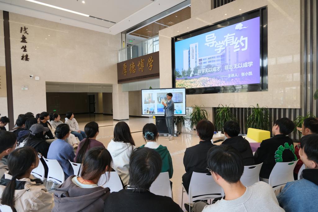 于11月8日在东氿校区成功举办了2024年“导学有约”系列活动第一期,本次讲座邀请到张小凯副教授,他分享的主题是“非学无以成才,非志无以成学”。此次活动由研究生会执行主席沈凯主持,同学们自发报名参加,现场氛围轻松活跃。