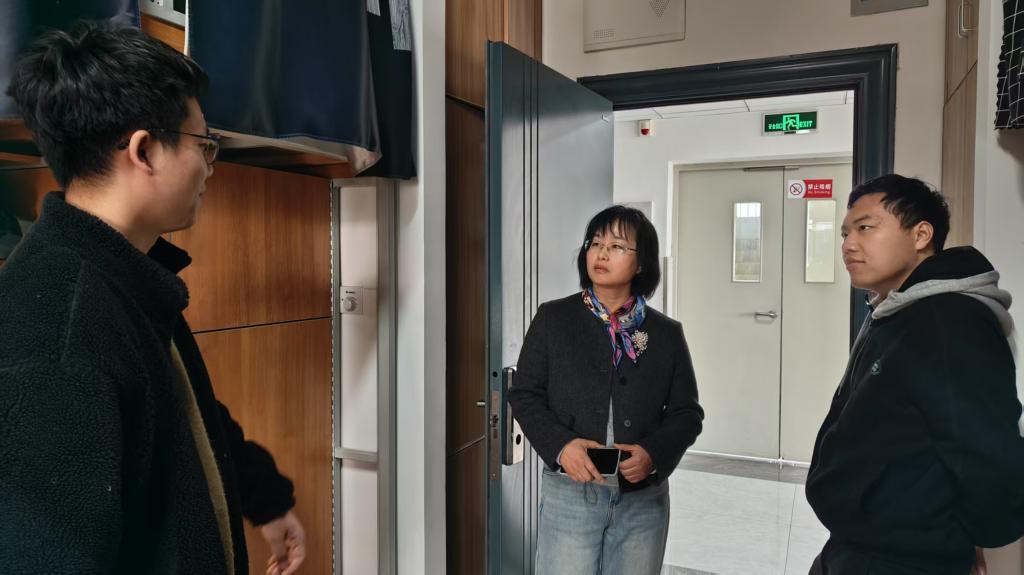 走访过程中,李艳与研究生们亲切交谈,详细了解他们的毕业论文进展、科研成果以及未来规划。对于即将毕业的研究生,李艳书记表达了诚挚的祝福,并鼓励他们继续保持学术热情,勇攀科研高峰。对于部分尚未确定去向的同学,她建议大家积极关注就业机会,结合自身优势和市场需求,合理规划未来。她还特别强调了宿舍安全与心理健康的重要性,提醒同学们在最后的学习阶段保持良好的生活作息,注意用电安全,营造和谐的宿舍氛围。