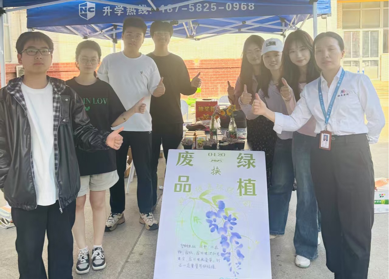 双碳绿点环保协会在学校二食堂门口开展“变废为绿,焕新校园”废品置换活动。活动以“废品换绿植”为核心,吸引百余名师生参与,累计回收废品近80公斤,兑换绿植及环保礼品70余份。