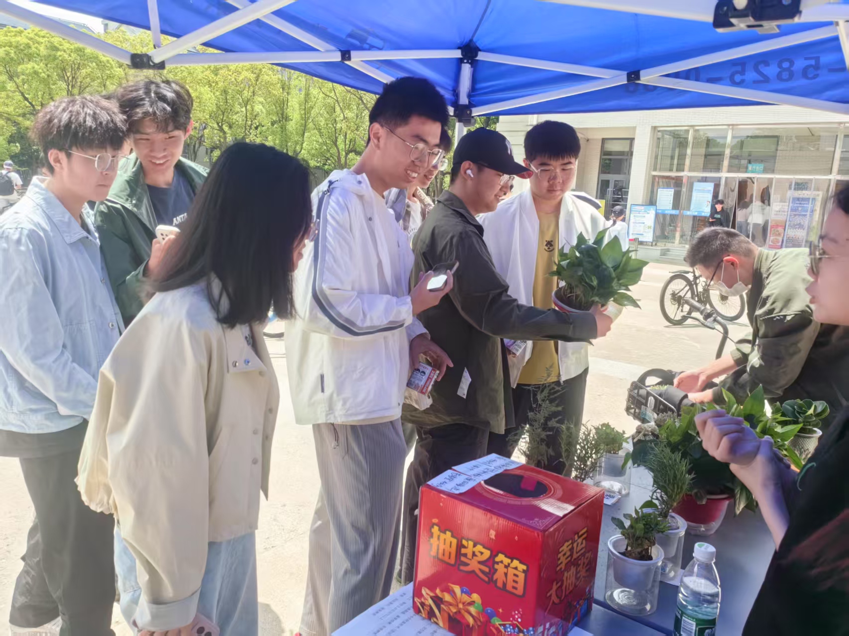 本次活动除去往年的传统置换方法外,特别设置“惊喜盲盒”环节。参与者转发活动至朋友圈即可参与抽奖,奖品包含绿植代金券及手作“治愈系安慰彩蛋”——内含协会成员手写的暖心环保倡议信。这一创意设计点燃学生热情,现场欢声不断。一位来自机械学院的同学表示:“原来废品置换也能这么有趣又惊喜!”