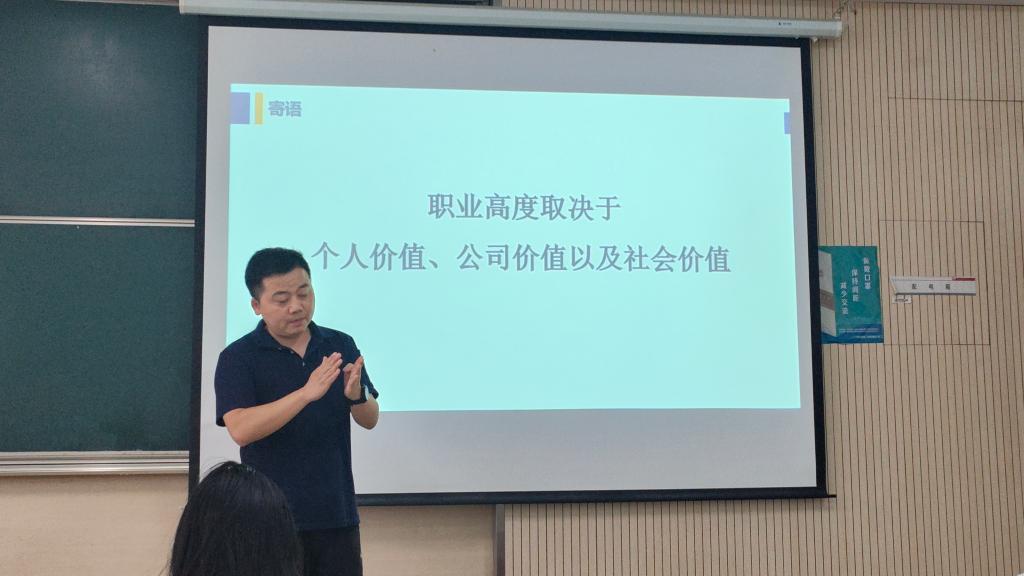 在互动交流环节,同学们围绕"如何实现个人价值最大化,在面试过程中如何得到用人单位的青睐"等问题踊跃提问。张明结合自身经验给出了中肯建议:"职业发展需要个人价值、企业价值和社会价值的统一。选择比努力更重要,但前提是要敢于突破自我设限。"他勉励同学们要"保持专业自信,把握时代机遇",现场气氛热烈,掌声不断。