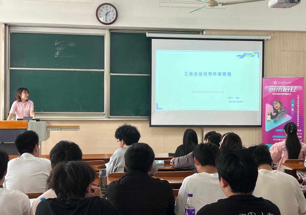 讲座现场,李姿结合自身的求学经历与职场经历,以目前所从事的工作内容为话题,围绕环保建设项目的管理基本要求、建设项目的环境影响评价、噪声控制以及固体废弃物管理等方面,为在座的同学们介绍环保行业的前沿动态,并结合案例深入剖析环保管理中的常见问题与解决策略。