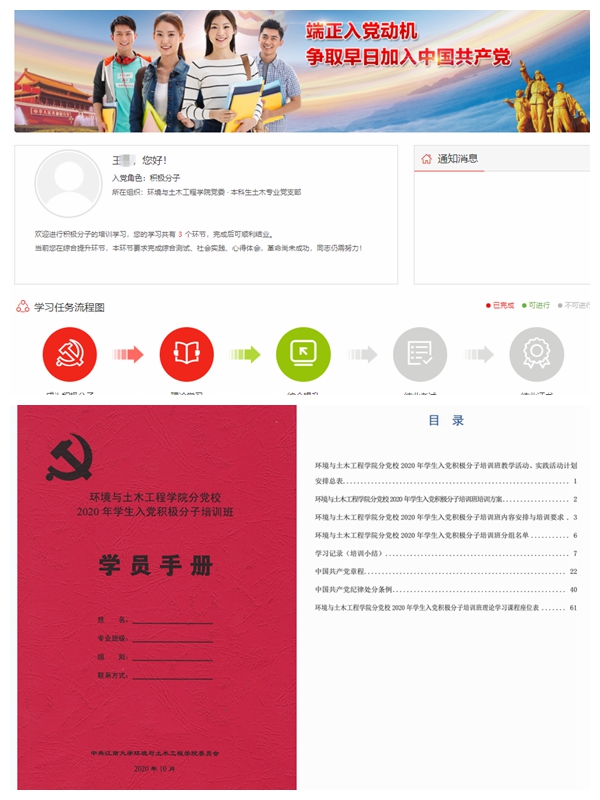 本期入党积极分子培训班首次实现“线上+线下”学习贯通,启用入党积极分子培训系统,设置线上专家辅导课程、实践纪实等,线下组织辅导报告、主题实践、志愿服务、座谈讨论等,执行统一教学计划,编印统一学习手册,旨在提高入党积极分子教育培养质量,规范入党积极分子培养考察,推进新时代学生党建工作组织化、制度化、具体化。