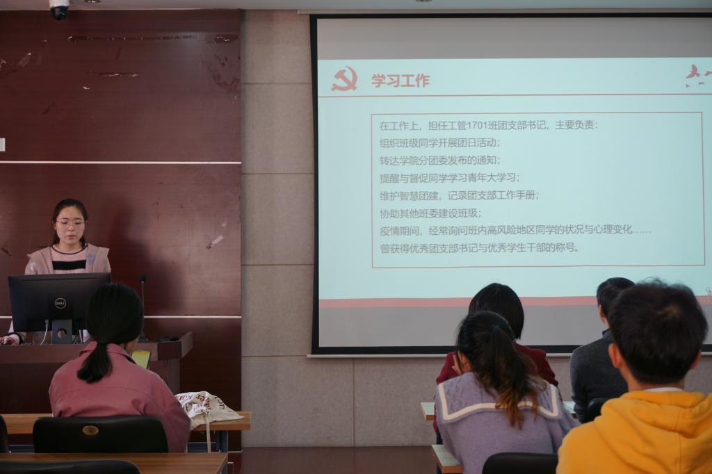 为进一步完善学生预备党员考察机制,切实发挥学生党员先锋模范作用,深入学习党的十九届五中全会精神,11月13日下午,环境与土木工程学院举行本学期预备党员转正答辩会暨学习党的十九届五中全会精神。院党委书记李艳,副书记胡娟,院党委秘书沈炎,辅导员周佳赟、薛羚伟、何涛、邵冰洁、周盼盼担任答辩评委,下半年拟转正预备党员参加会议,各支部其他党员、部分入党积极分子列席会议。
