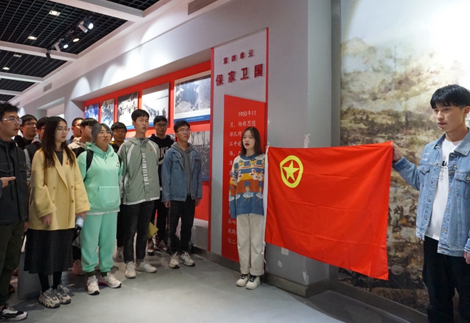 “历史书上几页的抗美援朝战争介绍,在现场聆听思政课,细细铺展开来,却浸透着血与火。展柜里的大衣、手套、勋章、枪炮与医疗箱,无不提醒着大家,时间匆匆流过,但英雄的抗美援朝精神,永不褪色。”土木专业1804班团支部书记毛鹏涛表示。