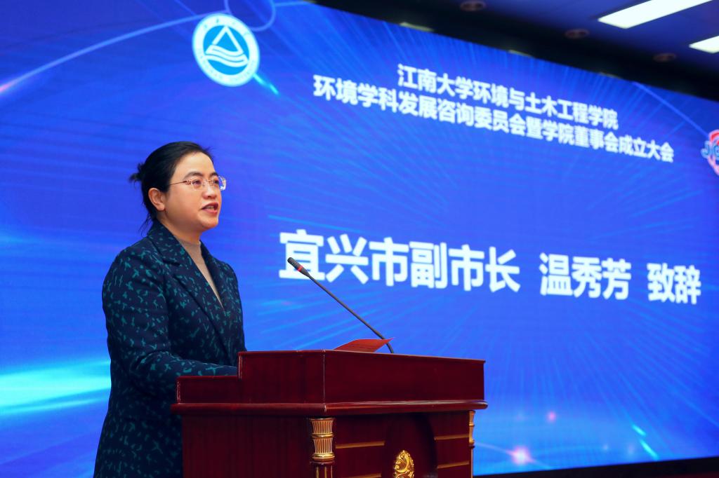 环境学科发展咨询委员会暨学院董事会的成立表示热烈祝贺。她相信环境学科发展咨询委员会暨董事会的成立,将进一步推进产学研深度融合,助力宜兴生态文明城市建设。