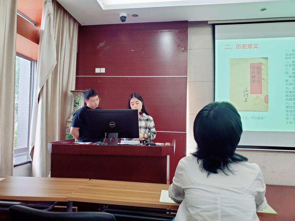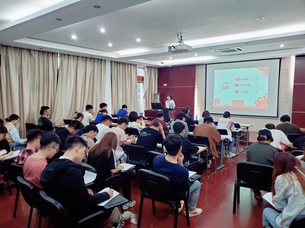 党支部书记王芮和各党小组组长汇报近期党史学习进度与计划。王芮以延安精神、井冈山精神和长征精神为主线,讲专题党课,向大家展示了信念的力量。每一位革命先辈的坚定信仰、崇高精神、伟大人格,永远值得我们学习,始终是我们奋勇前进的重要精神源泉。身处太平盛世的我们要学习革命前辈的斗争精神和光辉品格,肩负起建设社会主义现代化强国的重任。