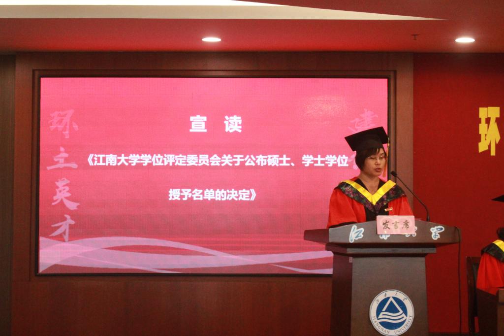 院党委书记李艳宣读关于公布硕士、学士学位授予名单的决定