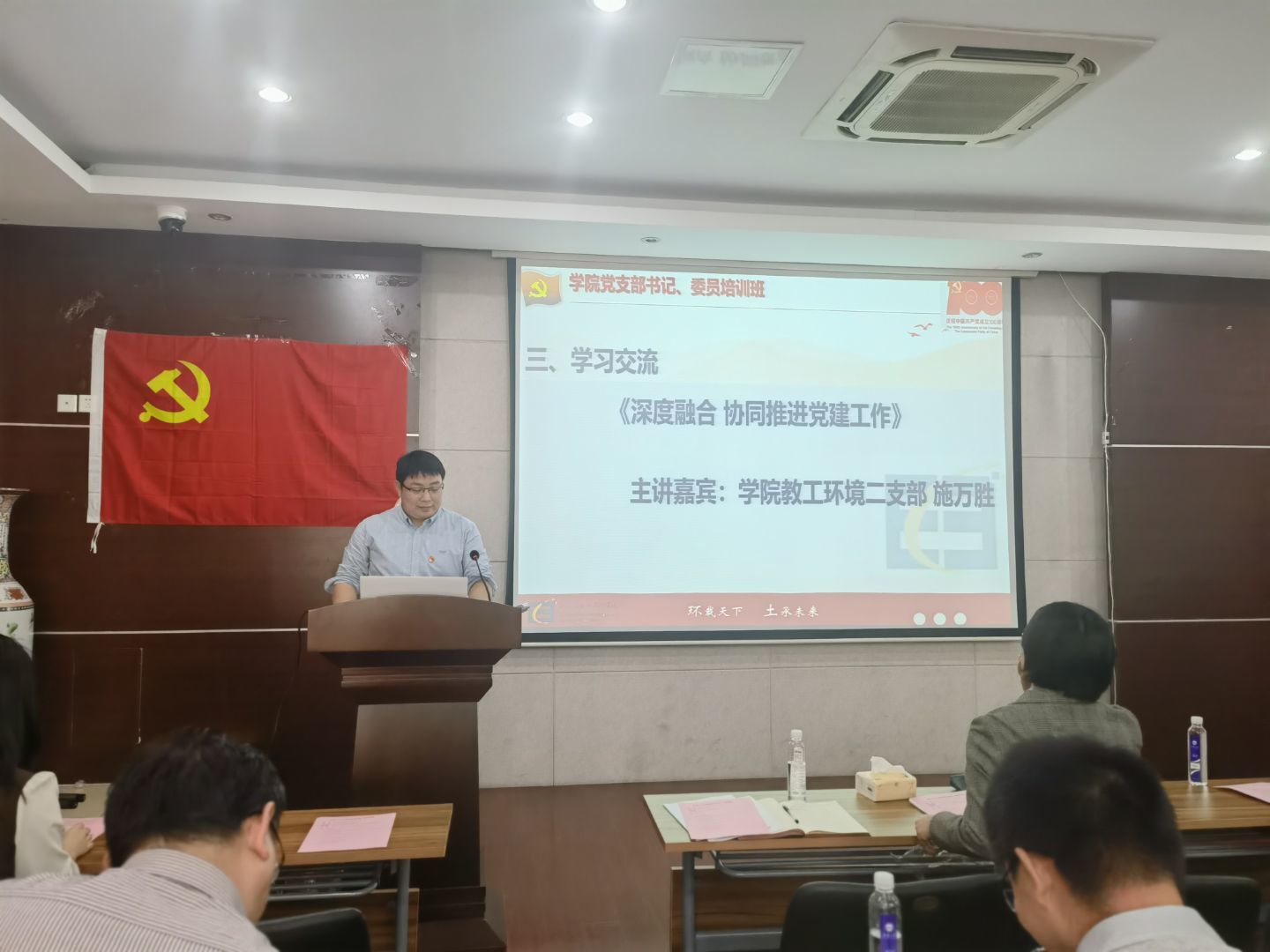 为进一步加强党的组织建设,提升党支部战斗力,强化旗帜引领,助推学院高质量发展,院党委组织开展党支部书记、委员培训班。2021年11月3日,培训班开班暨集中学习在学院D303会议室进行,院党委和全体党支部书记、委员参加了本次活动。