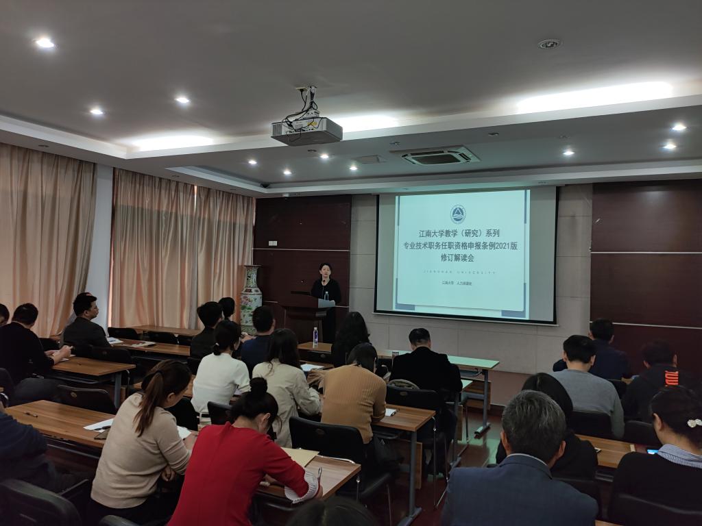 教学(研究)系列专业技术职称任职资格申报条例2021版修订解读会”的报告,全体研究生导师及教职工参加了本次会议,报告会由学院青年教师协会主席付善飞老师主持。