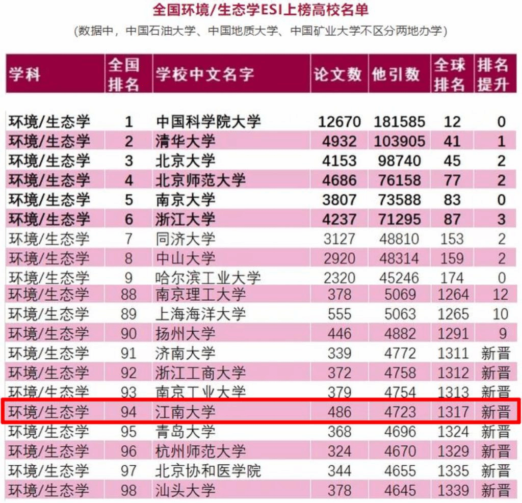 环境/生态学学科首次进入ESI全球排名1%