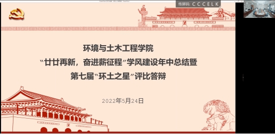 为积极培育和践行大学生社会主义核心价值观,营造争先赶超的学习氛围,挖掘学院大学生群体中的先进典型,激励学院学生勤学奋进,环境与土木工程学院开展第七届“环土之星”评比活动。5月24日,“环土之星”线下答辩会在学院楼D305举行,12名经过初评的候选人进行现场答辩,学院党委副书记、副院长胡娟,院团委副书记薛羚伟,辅导员何涛、李东辉担任评委,2021级全体学生通过腾讯会议线上参加了会议。