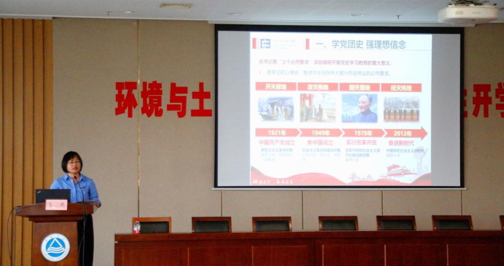 9月24日下午,环境与土木工程学院党委书记李艳为新生开讲主题为《青春孕育无限希望,青年创造美好明天》的思政教育第一课。学院党委副书记、副院长胡娟主持专题报告,全体辅导员,2022级全体本科生、研究生参加学习。