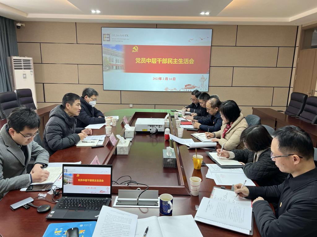 根据校党委《关于开好2022年度党员中层干部民主生活会的通知》要求,2月14日下午,环境与土木工程学院党员中层干部民主生活会在学院D305会议室召开,校督导组督导、党委副书记戴月波同志、校纪委副书记、党委巡察工作领导小组办公室主任丁文勤同志、督导组秘书董霆同志来院督查指导。院党委书记李艳同志主持会议。