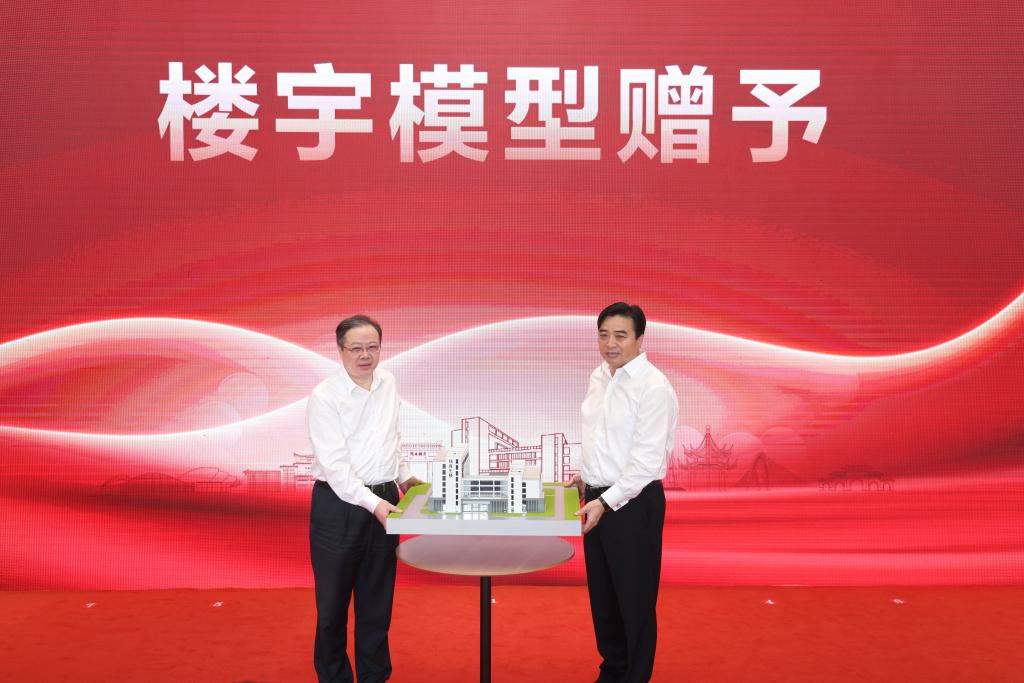 学校的快速发展离不开企业的鼎力支持,金山环保捐资助力新校区发展建设,保障优化科研条件,朱庆葆向钱盘生赠送楼宇模型。周云龙、钱盘生共同为楼宇题记揭牌。环境与土木工程学院书记、院长和徐韬分别为江苏省卓越工程师校外培养基地、党建学习教育实践基地揭牌。立足新起点,展望新未来。朱庆葆在讲话中向长期以来关心支持金宝娱乐城官网-金宝娱乐城JINBAO CASINO