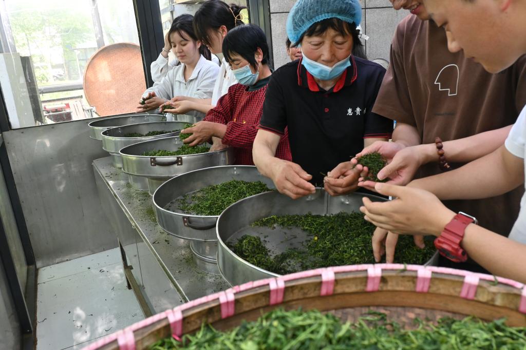 江苏省茶叶研究所、无锡市技术能手费佳以“怎样喝好一杯茶”为主题,为现场师生党员讲述了茶道的历史,她分别从选茶、泡茶、品茶以及存茶四个方面进行讲解。在场师生党员品尝了研究所准备的黄茶,在品茶的过程中,大家体味到了茶的香气与文化的韵味,更感受到中国传统文化的博大精深。随后,大家来到制茶室观摩并亲自体验手工制茶。高级农艺师、江苏省技术能手、全国农业技术能手邵元海师傅现场讲解并演示茶叶加工步骤,他现场对茶叶进行手工杀青、揉捻,在观摩师傅制茶过程中,许多党员燃起了兴趣,在邵师傅的指导下亲手体验了炒制茶叶,感受劳动的乐趣。最后茶研所党支部书记周静峰带领师生党员们参观了茶研所种植的各种各样的盆栽茶树,有鸭屎香、黄观音、宜兴奇曲等平日里不常见的品种,并现场介绍了如何采茶、茶叶的具体功效以及如何将茶叶入菜,这些知识生动有趣,党员们纷纷表示收获颇多并受益匪浅。