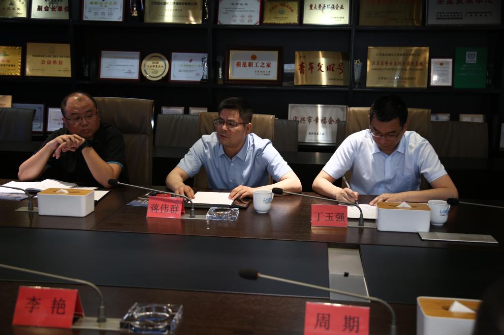 随后的交流会上,蓝必盛董事长蒋伟群首先对李艳等一行到访的老师们表示热烈欢迎,他介绍了蓝必盛企业升级转型之路,金宝娱乐城、技术特色以及二十多年来在化工废水处理领域做出的突出成绩进行了逐一介绍。接着李艳详细介绍了金宝娱乐城官网-金宝娱乐城JINBAO CASINO