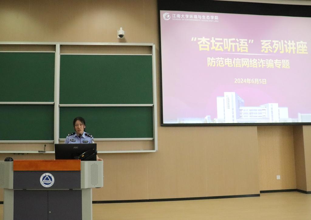 在二教2A127召开“杏坛听语”系列反诈防骗知识讲座。本次讲座由雪浪派出所民警戴警官主讲,2021级、2022级、2023级本科生参与本次活动。金宝娱乐城
