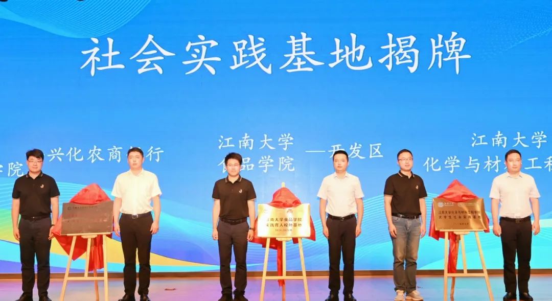 与兴化农商银行共建社会实践基地授牌仪式,薛羚伟与兴化农商银行副行长童文勇共同为社会实践基地揭牌。