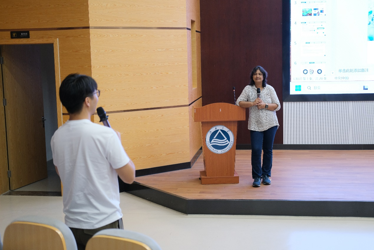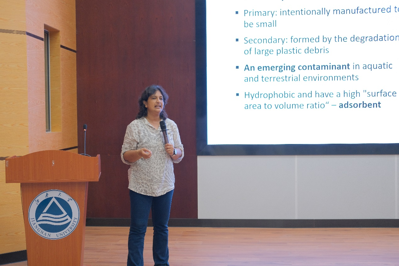 本次讲座中,Vithanage教授介绍了生态圈弹性研究中心最近的研究进展,她从生活中常见的微塑料入手,详细介绍了微塑料的特点、危害以及现阶段其团队对微塑料的研究进展。微塑料作为载体可以吸附环境中的咖啡因(CFN)和三氯生(TRI),他们通过对比老化前和老化后的微塑料对CFN与TRI的吸附能力,利用不同的表征方法,揭示了微塑料作为PCPs吸附载体对这些新污染物在环境中的传播规律。此外,Vithanage教授团队还全面评估了这一新污染物传播途径对环境与人体健康带来的影响,并对当前研究领域作出了展望。会后,Vithanage教授与在场师生们进行了热烈的学术交流,并回答了现场提问。