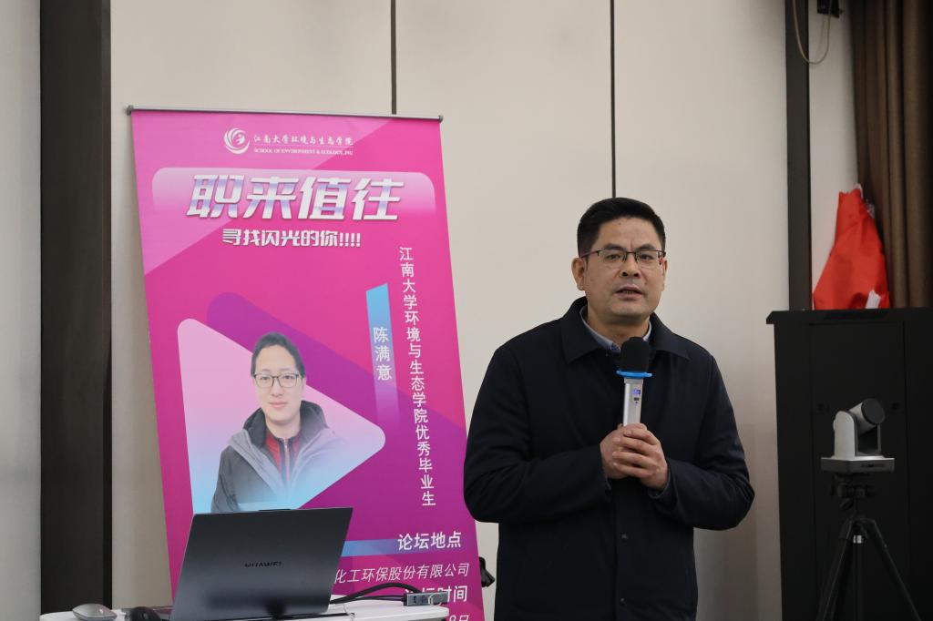 董事长蒋伟群在致辞中强调,环保行业需要既懂技术又懂市场的复合型人才。他结合行业趋势,鼓励学生择一业,事终身,既然选定环境专业,就坚定不移的走下去,保持自主学习、终身学习的好习惯,将专业知识与市场需求结合。邵汝英所长分享了蓝必盛在重金属污染防治、碳中和实践中的经验,她通过具体案例,解析了环保技术研发如何帮助企业实现经济效益与环境效益双赢,引发师生热烈讨论。