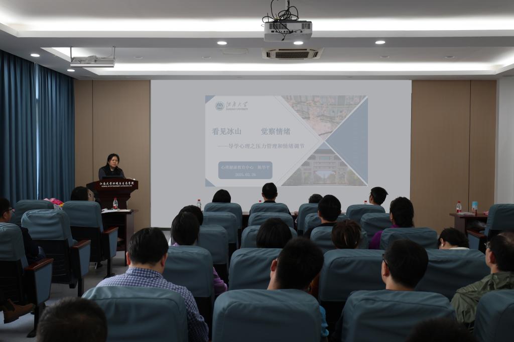 ,为全院导师带来了一场题为《看见冰山,觉察情绪——导学心理之压力管理与情绪调节》的专题讲座。本次活动旨在构建高质量和谐导学关系,进一步优化师生互动模式,营造健康积极的学术成长环境。