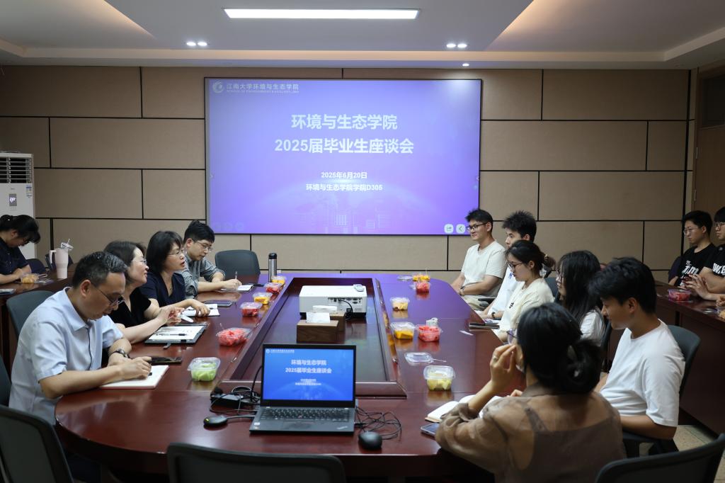 举办2025届毕业生座谈会,学院党委书记李艳,副书记、副院长胡娟,副院长王新华,毕业班辅导员周期、李东辉,本硕博毕业生代表围桌而坐,在蝉鸣声声中共话青春岁月,展望绿水青山的未来征程。
