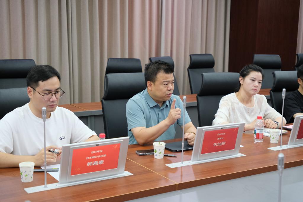 活动伊始,副院长王新华首先全面介绍了学院在学科布局、科研攻坚、人才培养等方面取得的显著成就与特色优势,并重点阐述了相关科研团队在水污染控制、固废资源化、生态修复等前沿领域的研究方向与突破性成果,展现了学院深厚的科研底蕴与育人实力。随后,苏科环保董事长宋灿辉分享了公司的核心发展理念与独特的企业特色,他深入剖析了公司在可持续发展理念引领下,如何通过持续的技术创新驱动发展,并积极践行企业社会责任,致力于成为环保行业的价值创造者与引领者。韩嘉豪则聚焦企业及产品技术,详细阐述苏科环保在环保技术研发、应用场景拓展等方面的创新实践,凸显企业在行业内的技术优势。最后,赵艳从企业人才战略视角出发,精准剖析了当前环保产业快速发展背景下的人才需求图谱。她围绕核心岗位能力模型、未来人才技能要求以及职业发展通道等维度进行了清晰阐释,为学院优化人才培养方案、提升人才市场适配性提供了极具价值的参考。