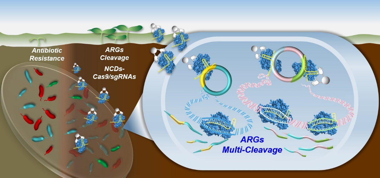 王震宇教授团队在抗生素耐药基因(ARGs)污染阻控研究方面取得新进展,通过建立一种基于纳米材料的CRISPR/Cas9递送系统,首次实现了对土壤环境ARGs的多重编辑,并初步证实该递送系统在控制环境耐药性方面的可行性和有效性。