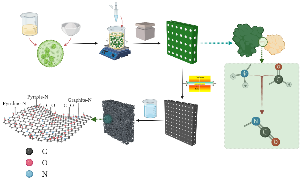 图1. 三维多孔蓝藻电极的制备过程示意图