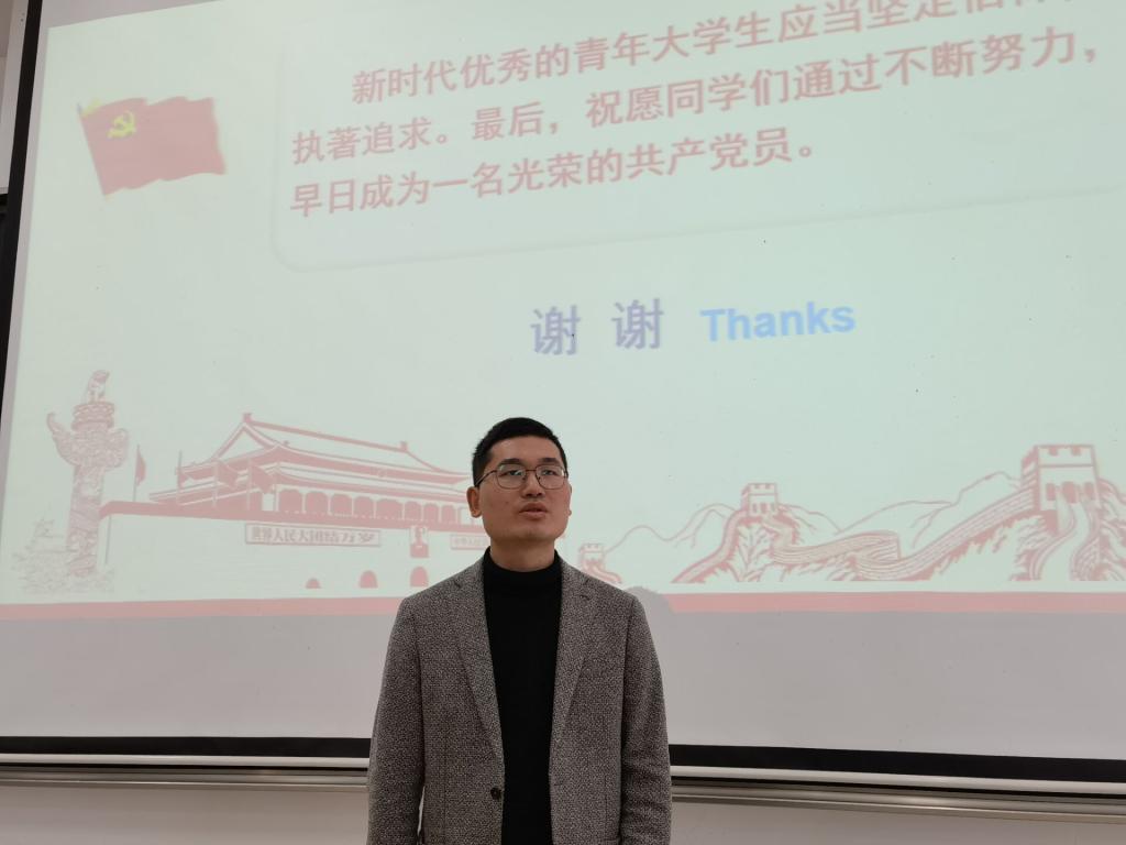 最后,何涛老师对本次主题讲座进行了总结。首先,他肯定了积极分子积极向党组织靠拢的态度,并要求积极分子们以党员的要求严格要求自己,端正入党动机,要在思想上入党;同时勉励同学们,要扎根实际,认真学习本次党的十九届六中全会精神,同时牢记习近平主席对青年学子的寄语,要把青春奋斗融入党和人民事业,成为实现中华民族伟大复兴的先锋力量,不负时代,不负韶华,不负党和人民的殷切期望。